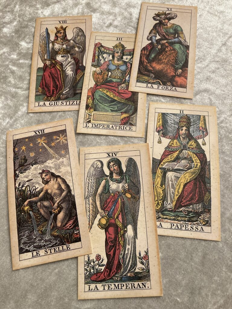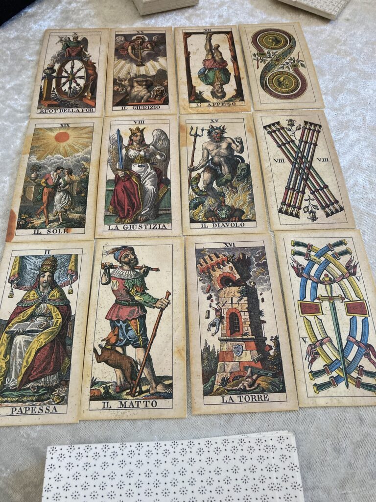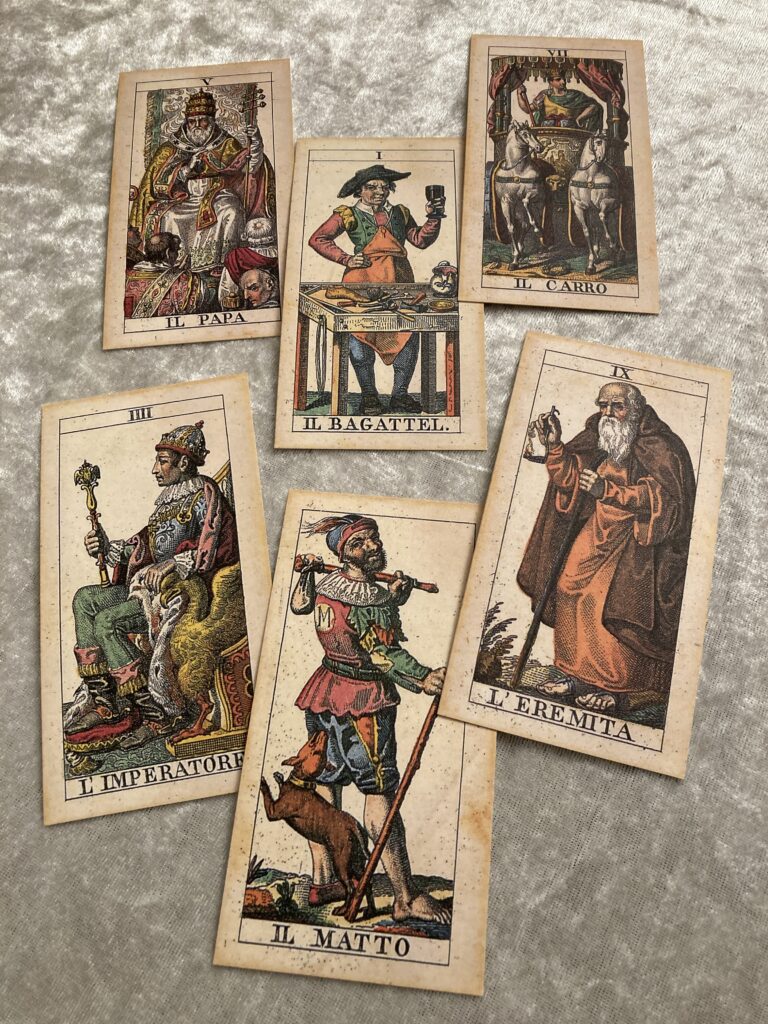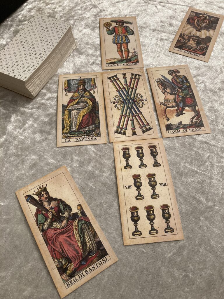 I offer a trauma-informed, psychotherapy-integrated approach to the Tarocco Soprafino Marseille Tarot for exploring your inner world, family system patterns, life direction and relationships – in person in Romsey, Hampshire, or online in the UK.